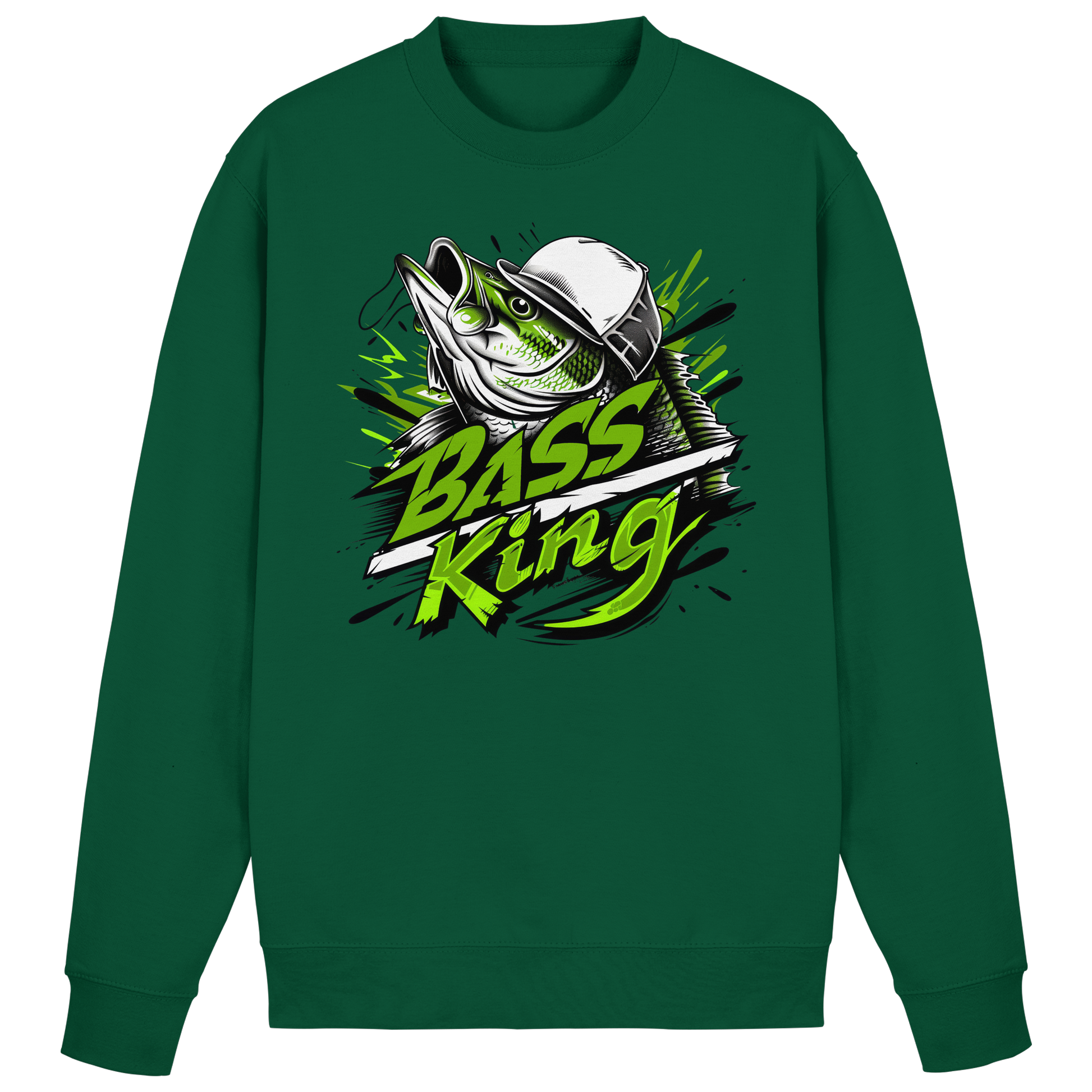 Das „Bass King“ Sweatshirt / Sweater steht für Dominanz, Erfahrung und Erfolg beim Barsch, Schwarzbarsch - Bassangeln. Wer dieses Motiv trägt, zeigt Selbstbewusstsein und Leidenschaft für das Bass Fishing – ein klares Statement für Angler, die wissen, wie man kapitale Barsche, Schwarzbarsch und Bass bezwingt.
