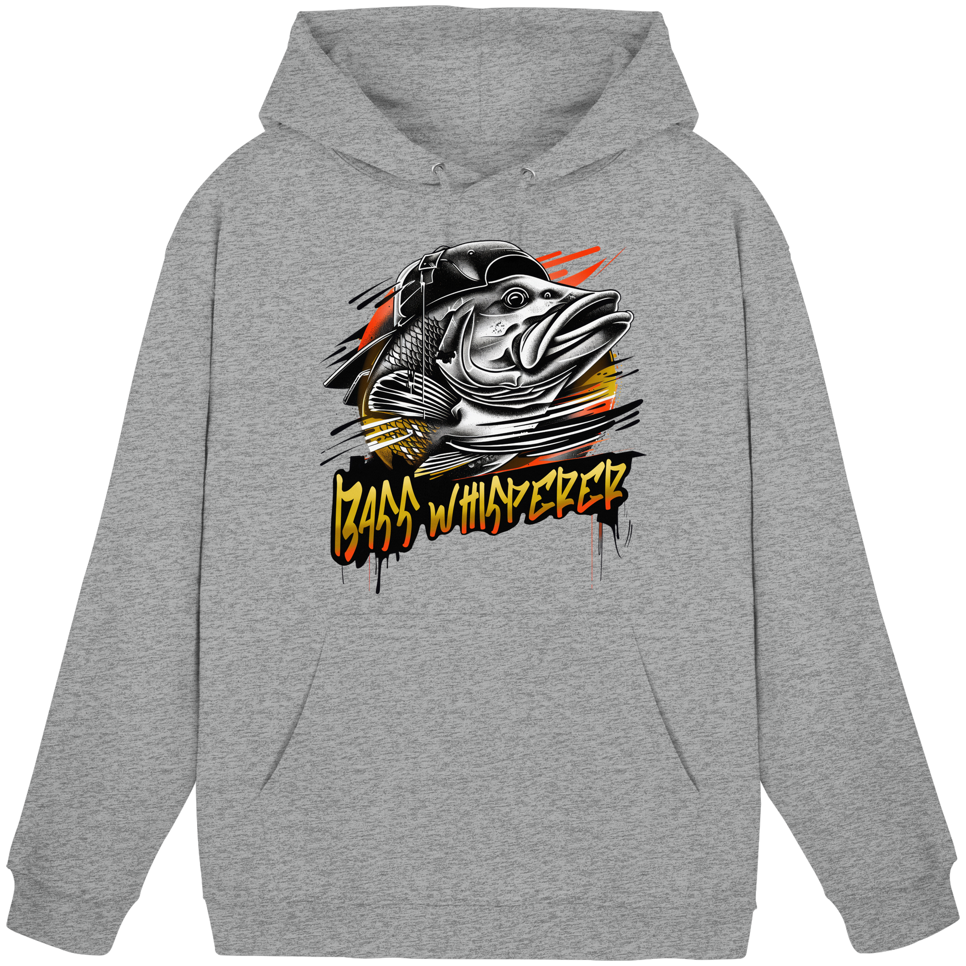 Der „Bass Whisperer“ Hoodie / Kapuzenpullover steht für feines Gespür, Erfahrung und tiefes Verständnis beim Angeln auf Barsch, Schwarzbarsch und Bass. Der Begriff Whisperer symbolisiert die Fähigkeit, den Raubfisch zu „lesen“, Gewässer zu verstehen und im richtigen Moment zuzuschlagen.